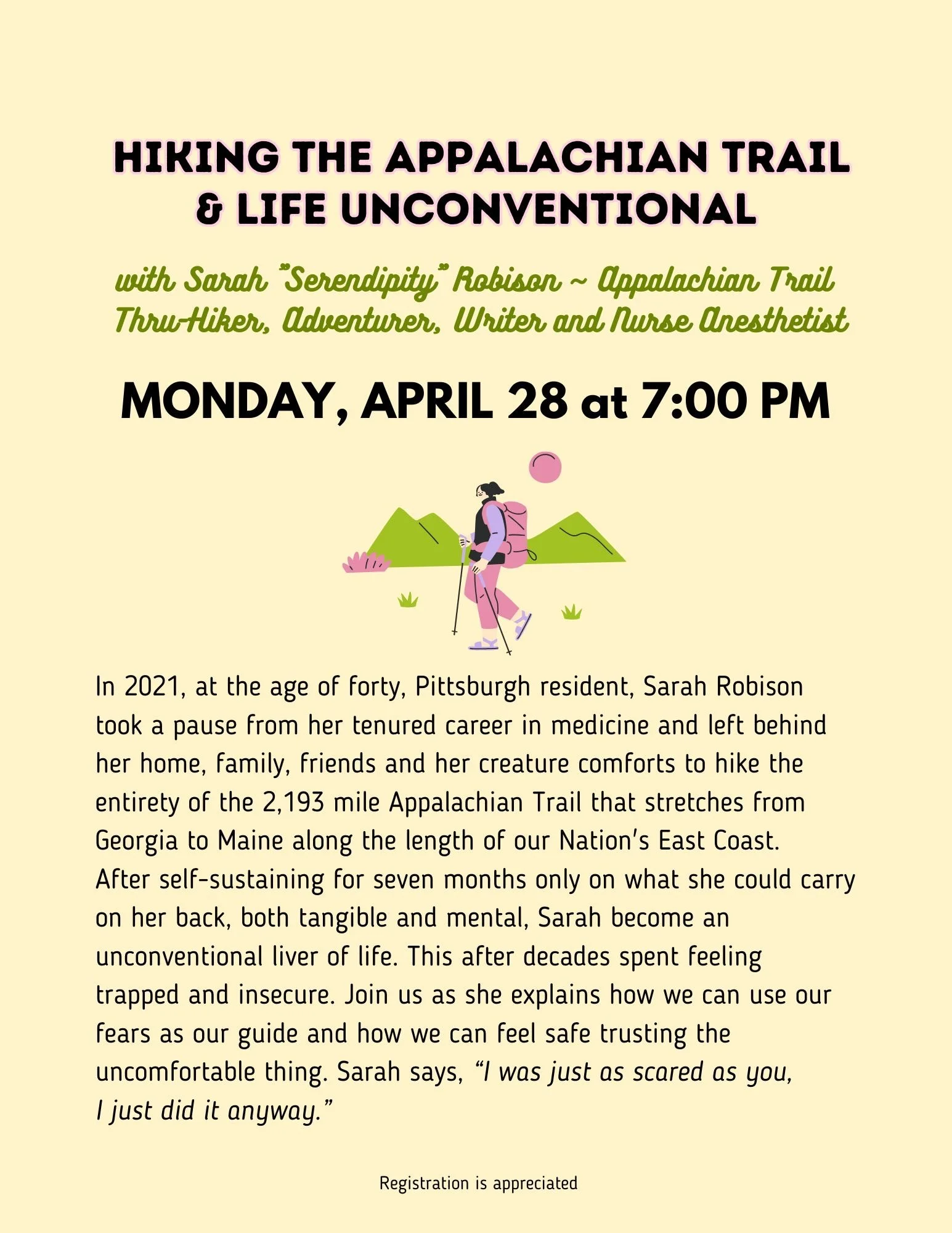 “I’ve tried to address the beckoning of a blinking cursor many times over the last few months, but I have come up short each time.”, Mary Leavines, my friend, Appalachian Trail thru-hiker, and author, shared in her latest piece, “Creation is an act of resistance, the world still needs your art.”